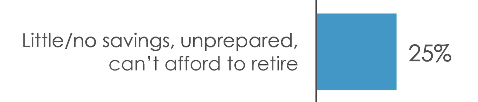 If you had to guess the percentage of retirees worried about their retirement due to having little or no savings, what would that number be? You might be surprised to know that according to the Employment Benefit Research Institute’s (EBRI) confidence survey, 25% of retirees feel unprepared for the future due to having little to no savings¹.