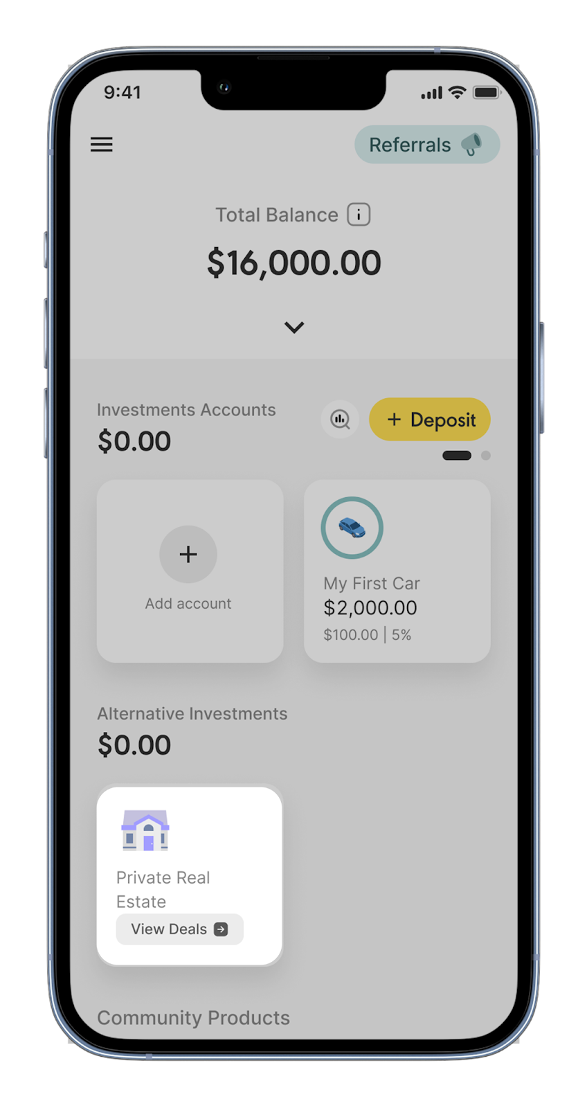 Step 1: Tap ‘Private Real Estate’ from your dashboard