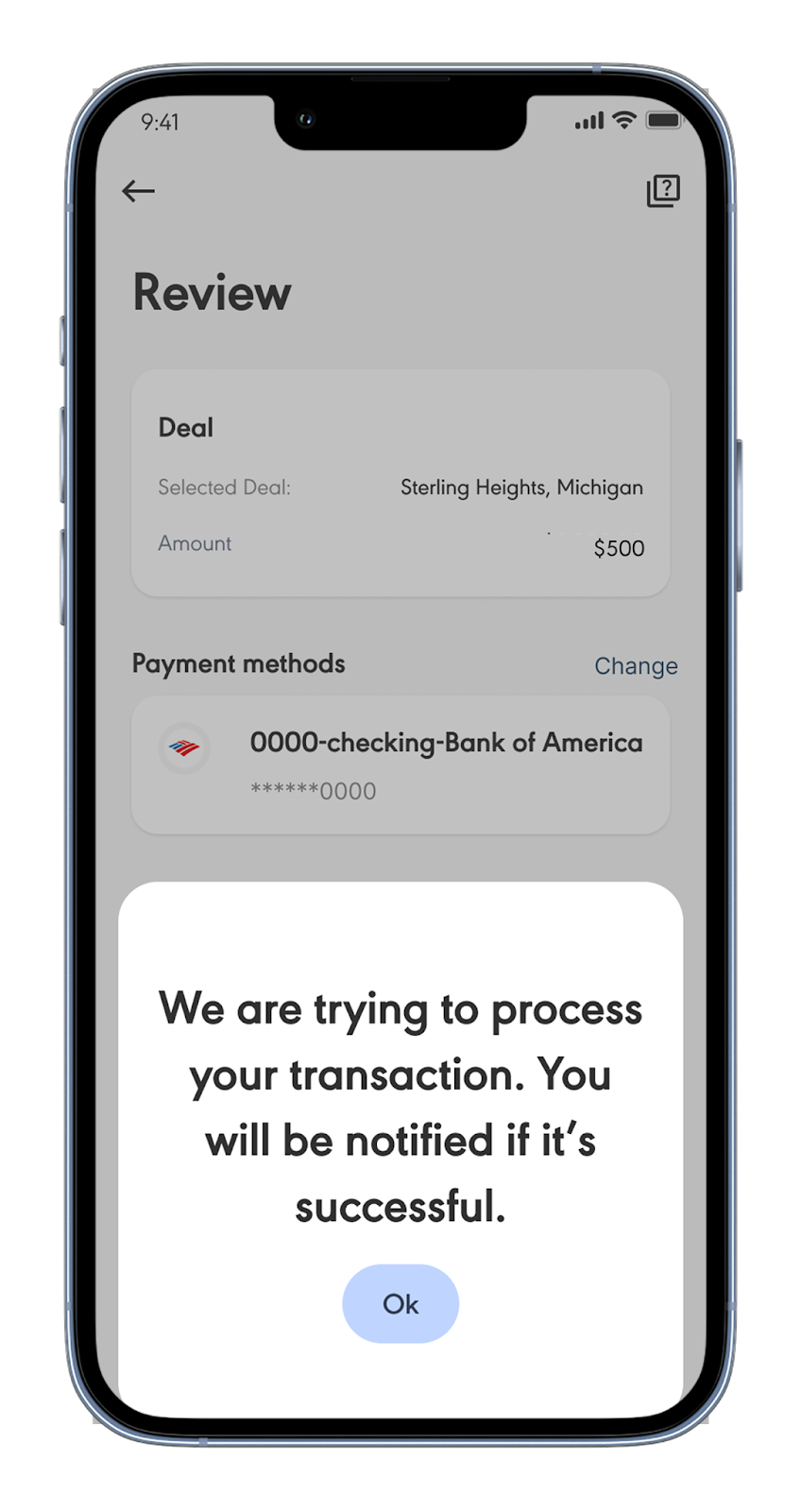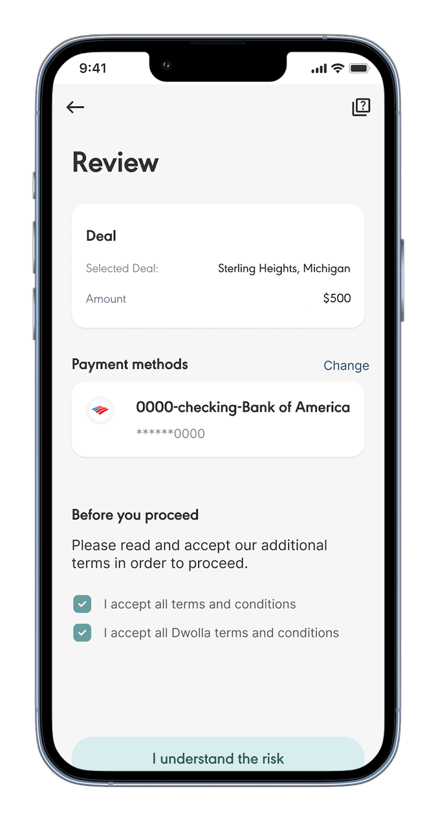 You’ll see live deals on the dashboard when they are available. Tap on the deal to open the investment page, where you can find detailed information about: