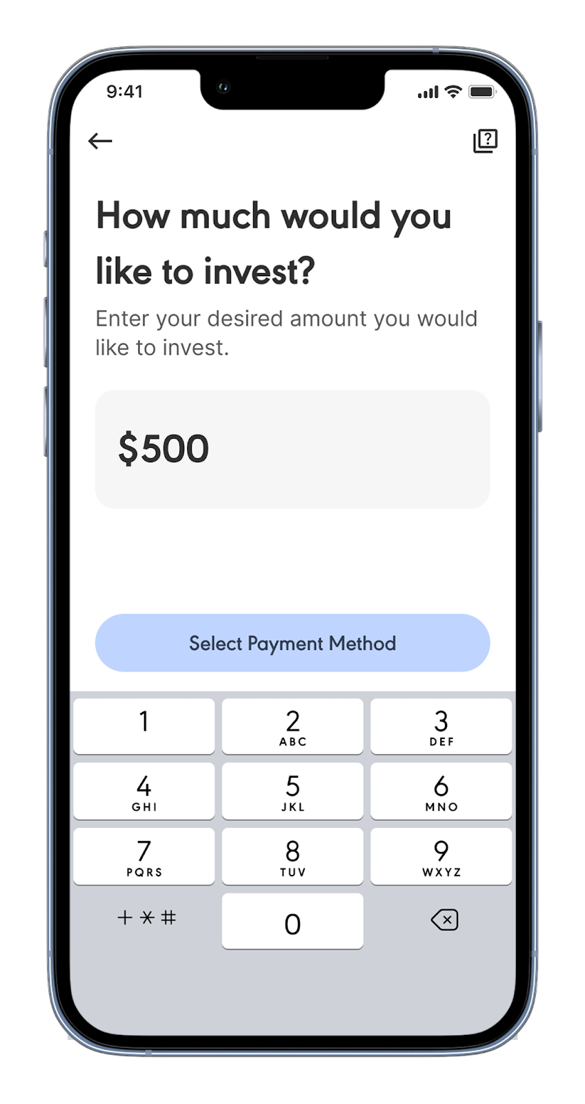 The minimum investment is $500, and you can invest in multiples of 100. The app will automatically check that your amount is within your annual investment limit.